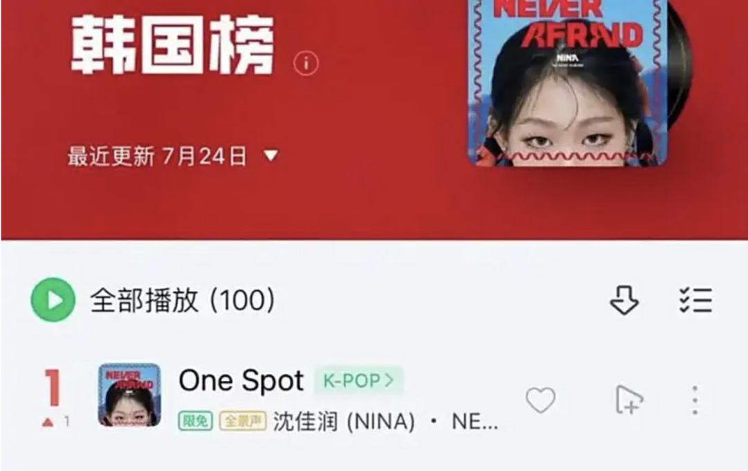 在7月25日《onespot》登顶QQ音乐韩国榜之前,”